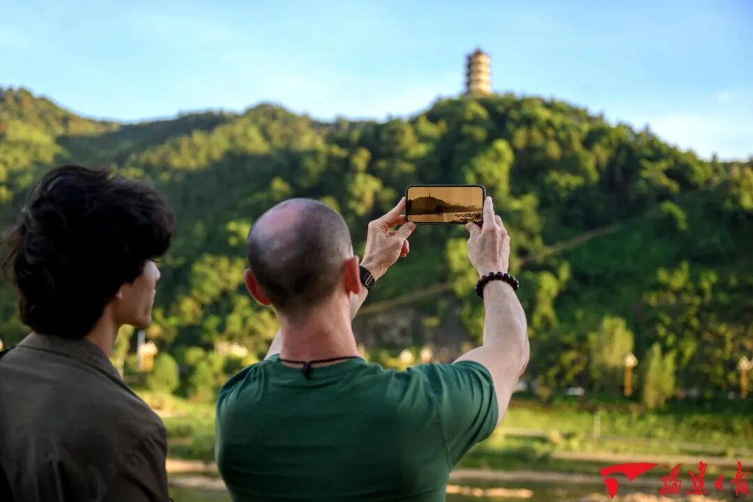 8月13日,建甌市鐵井欄—紫芝街歷史文化街區(qū),查德威克和兒子萊力對一座正在修建的中式仿古建筑產(chǎn)生了濃厚的興趣。