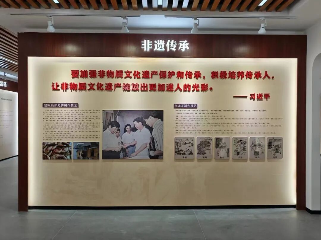 非遺傳承·唇齒間的匠心與茶香 如果說“南雅記憶”是一部宏大的史詩,那么“非遺傳承”便是其中最富人情味的篇章。在“非遺傳承”展區,兩種最具代表性的舌尖味道——高爐光餅與南雅烏龍茶制作技藝,正散發著最誘人的煙火氣。光餅,貼于高爐內壁,以炭火慢烤,出爐時餅面金黃,餅邊潔白,酥香脆口。它不僅僅是一種食物,更是一段可以咀嚼的歷史。而另一縷縈繞館內的幽香,則來自“北苑貢茶?南路水仙”——烏龍茶優質品種之一。南雅山巒疊翠,云霧繚繞,是孕育佳茗的絕佳之地。展板上,制茶師傅們采摘、萎凋、做青、殺青、揉捻、烘焙的身影,是一幅生動的農耕畫卷。一餅一茶,一剛一柔,一煙火一清雅。它們承載的,是南雅人化平凡為神奇的智慧,是他們對生活品質的執著追求,也是這片水土最質樸、最深情的味道記憶。